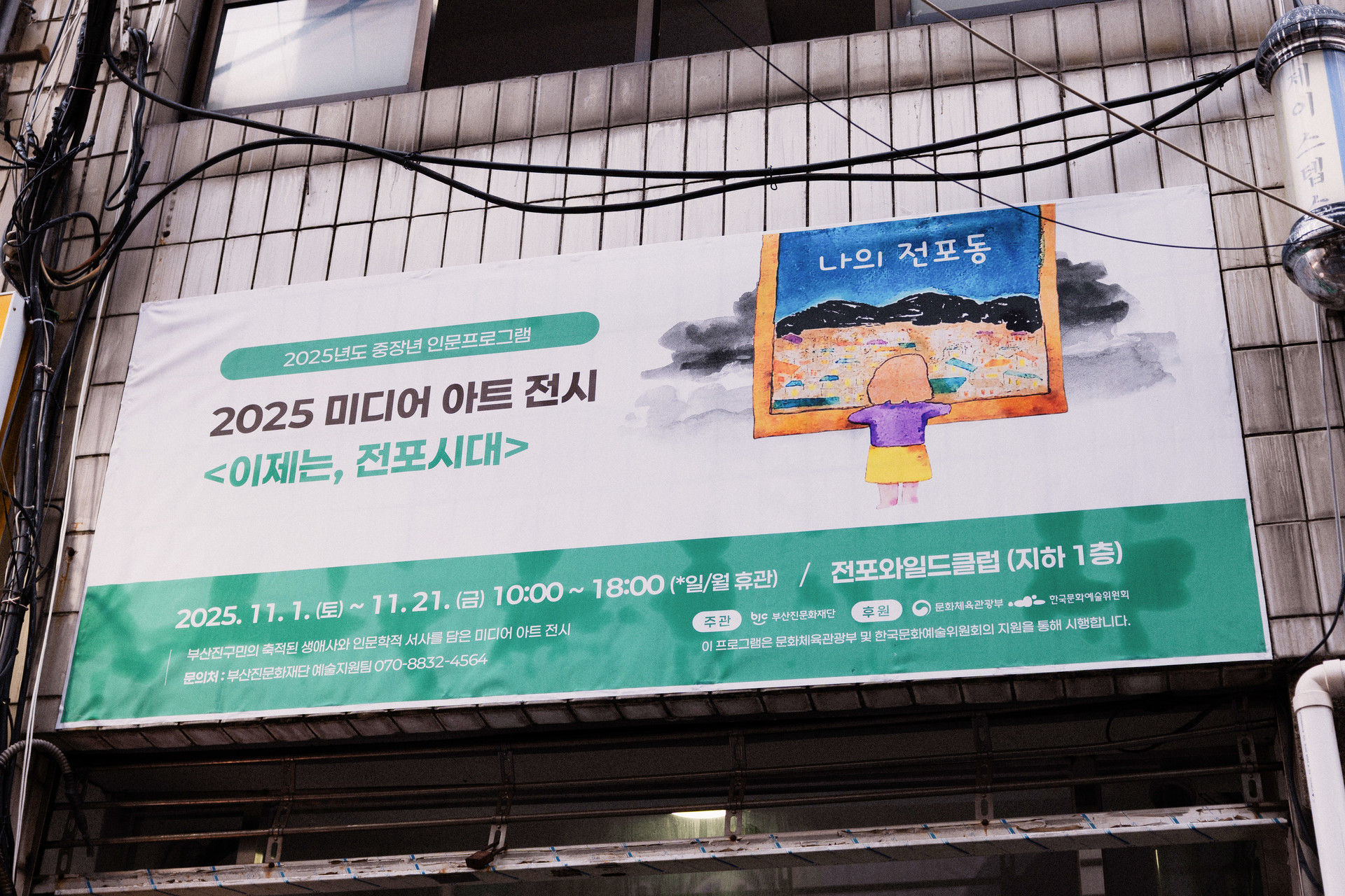 전포동의 일상과 기억을 기반으로 지역 주민과 작가가 함께 만든 208점의 미디어아트 작품을 한자리에 선보인 전시입니다. 마을버스 2번 노선, 골목의 풍경, 지역의 생애사 등 전포동을 이루는 생활의 장면들을 시각적으로 재구성해 ‘지역이 예술이 되는 경험’을 중심에 두고 기획했습니다. 공간 전체는 내러티브 기반의 흐름으로 설계해 관람자가 전시존마다 서로 다른 정서와 이야기를 만날 수 있도록 구성했으며, 주민 참여 드로잉과 동화책 그래픽, 야간 미디어 작품 등을 유기적으로 연결해 전포동의 정체성을 다층적으로 보여주고자 했습니다. 생활 속 인문정신을 문화예술로 확장하는 사업 취지를 전시 전반에 자연스럽게 녹여, 지역과 공동체의 시간을 하나의 전시 경험으로 완성했습니다.